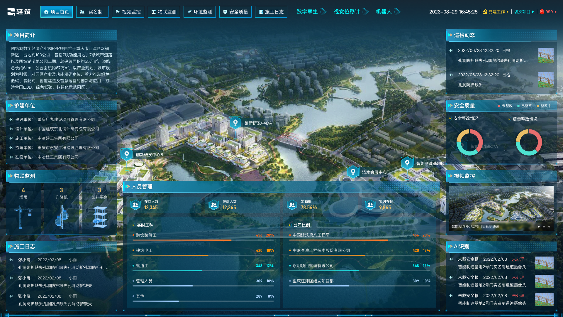 中冶賽迪信息打造的首個數字化智慧建造管控平臺產品——輕筑,以智能化+信息化為核心技術手段構建工程建設“項目-企業-政府”多級聯動管控體系,對工程建造的“人、機、料、法、環”的全業務鏈條閉環管理,為企業、政府提供生產提效、安全可控、成本節約的精益管理模式,產品累計服務超2萬個項目,超500萬建筑工人。